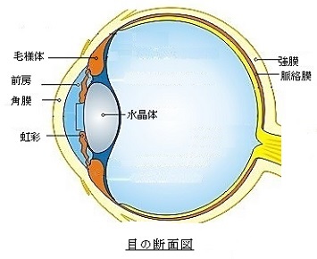 目に入る光の量を調節するのが虹彩(こうさい)、
